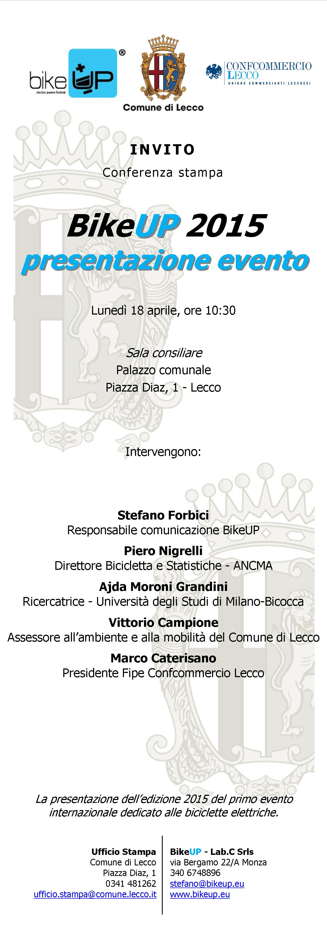 Tre giorni dedicati esclusivamente alle biciclette elettriche e alla mobilità sostenibile a pedalata assistita: questa la filosofia di BikeUp, il primo festival europeo del settore in programma dal 19 al 21 giugno 2015 nel cuore della cittadina di Lecco affacciato sul lago.