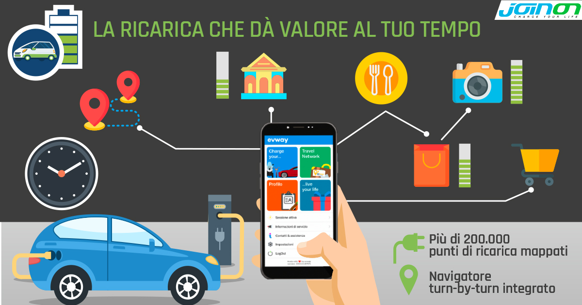 Stiamo parlando di evway, che ha realizzato una piattaforma in grado di offrire una mappa delle colonnine di ricarica in Italia e in Europa associate ad informazioni non solo di tipo tecnico (esatta ubicazione, potenza, tipo di presa, modalità di accesso, necessità o meno di tessera) ma anche di tipo esperienziale: opportunità per un pranzo, dello shopping, una visita ad un’attrazione locale. Il tutto, appunto, mentre il proprio veicolo elettrico si ricarica.