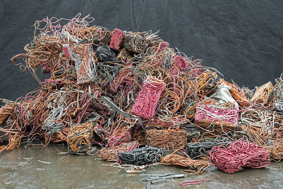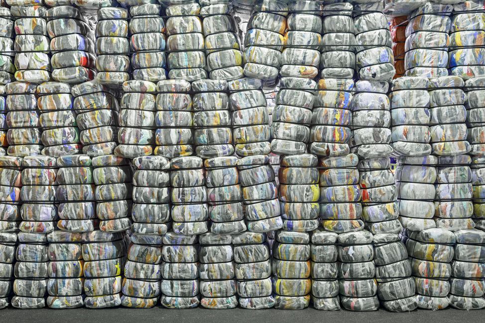 Un modo originale di riscattare il tanto deprecato rifiuto, quell’elemento che infastidisce e che, ahimè, inquina e lascia dietro di sé strascichi fastidiosi che però possono rinascere. Bulteel, percorrendo circa 50 impianti di raccolta di Belgio, Germania, Lussemburgo, Francia e Paesi Bassi, racconta cosa accade a carta, metalli, vetro, plastica, elettrodomestici, vestiti e tanti altri prodotti quando giungono a fine utilizzo e vengono trasformati in nuovi materiali. Il tutto per cercare di commentare gli sforzi compiuti nel riciclo. Una sorta di ritorno all’ordine dal caos. La maggior parte delle fotografie ritrae ammassi e montagne di materiali che sono stati raccolti e ordinati poi triturati, impacchettati, accatastati, impilati, schiacciati, trasformati. Queste bellissime e suggestive immagini parlano da sole, lasciamole parlare, dunque.