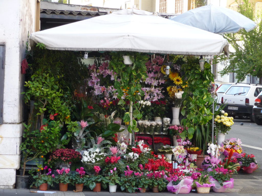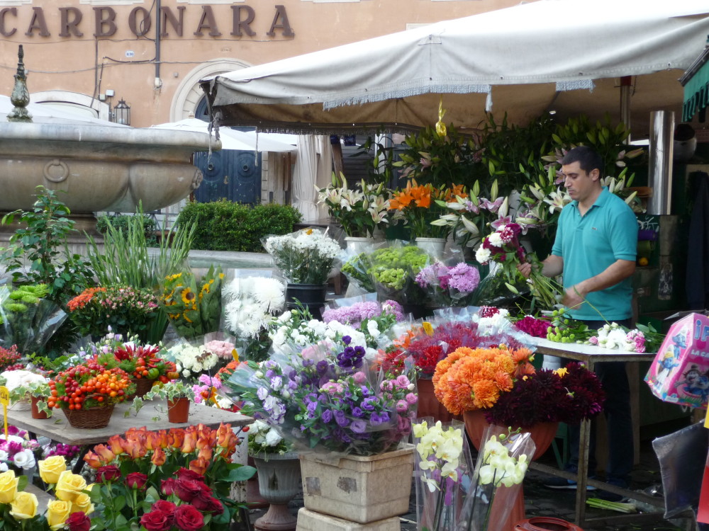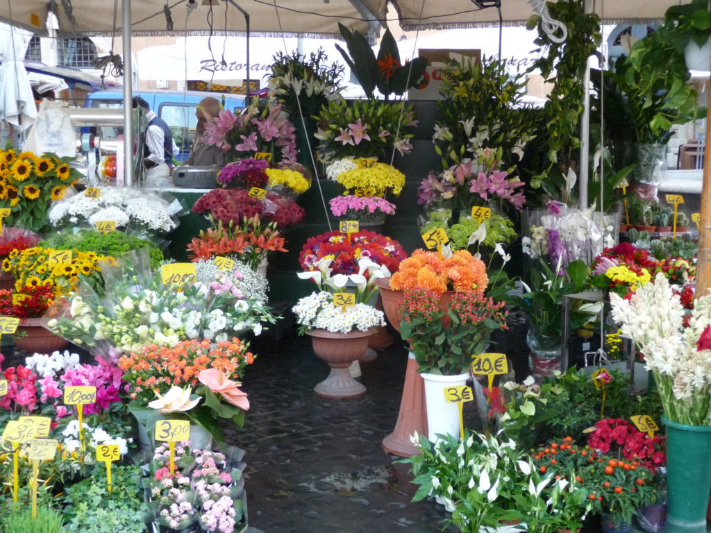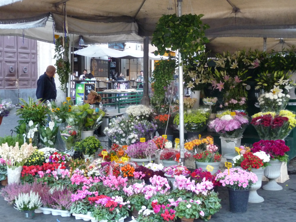 Roma città dei colori, delle voci, dei fiori. Sapete forse che fino al Quattrocento la famosa piazza di Campo de’ Fiori non esisteva e che al suo posto vi era un prato fiorito con alcuni orti coltivati? Da qui il nome… Sapete che, invece, secondo altra tradizione, la piazza dovrebbe il suo nome a Flora, amata da Pompeo il quale aveva costruito nei pressi il suo teatro? Quello che è certo è che ancora oggi, in questo posto magico, si trovano margherite, ciclamini, papaveri, rose, tulipani, gerbere, peonie, insomma ogni genere di fiore che gentili proprietari di allegri chioschi mettono in vendita, complice un’aria frizzantina e leggera. Sempre più spesso sono pachistani o indiani a offrire mazzi profumati validi per ogni occasione, instancabili lavoratori che tutto il giorno vegliano a quei colori e ai loro dolci petali. Ma non solo in questa piazza si osserva un mare di toni accesi, piacevole sorpresa per mani e occhi sensibili, tutta Roma ne è avvolta. Dal centro storico fino alla Garbatella. Quando i fiori non avvolgono i monumenti, sono pronti ad accogliere ciascuno con i suoi pensieri. Basti pensare, poi, che nell’antica Roma, dal 28 aprile al 3 maggio di ogni anno, momento critico della fioritura delle messi, si svolgevano i Ludi Floreales o Floralia, feste dedicate alla dea, nelle quali abbondavano i divertimenti. Quale città dunque non è più legata ai fiori? Abbiamo passeggiato per voi lungo le strade della capitale che sanno di antico e abbiamo colto qualche angolo fiorito caratteristico. Scatti per voi, cari lettori, a noi gli occhi!