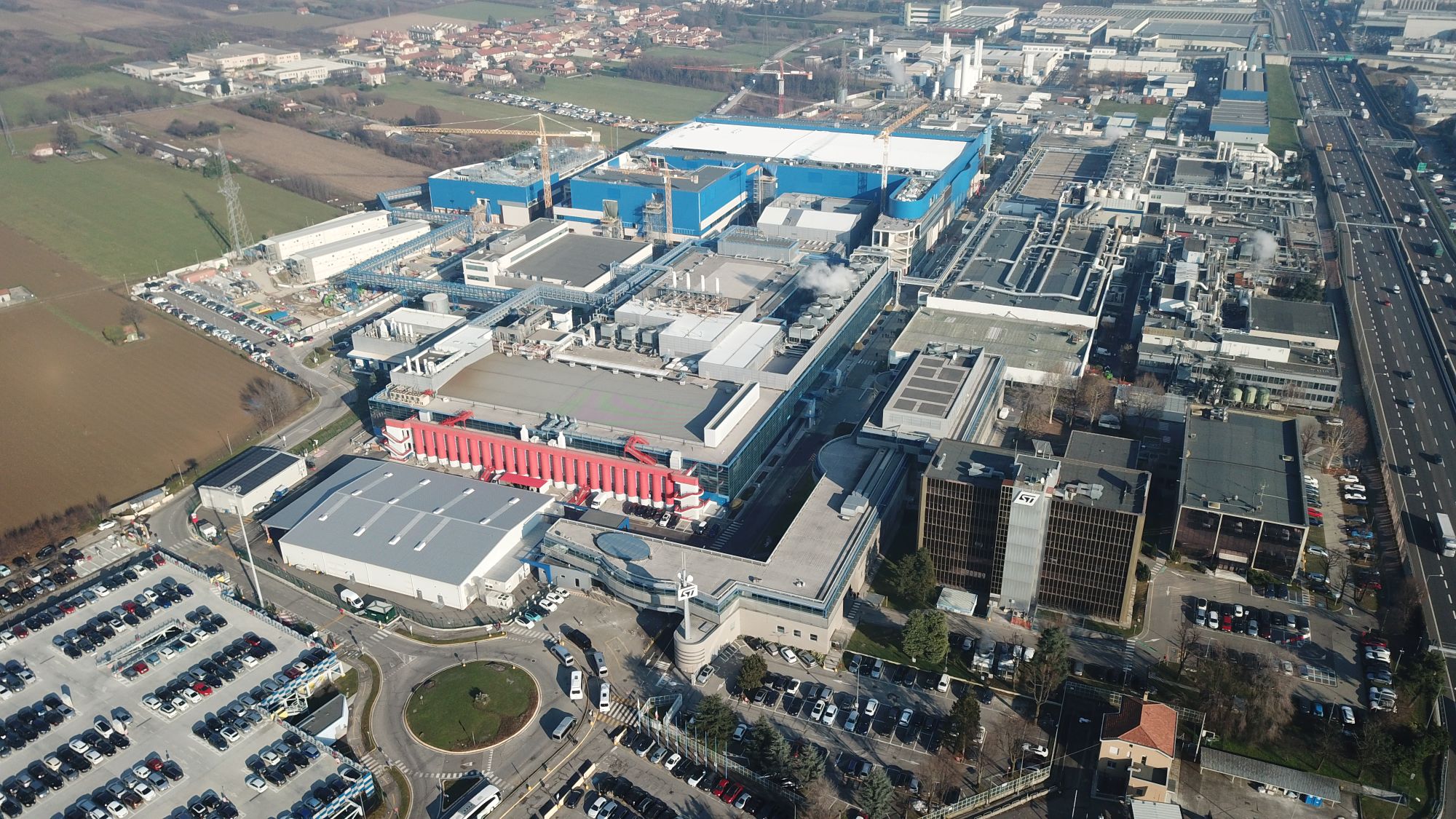Veduta aerea dello stabilimento di STMicroelectronics di Agrate Brianza.